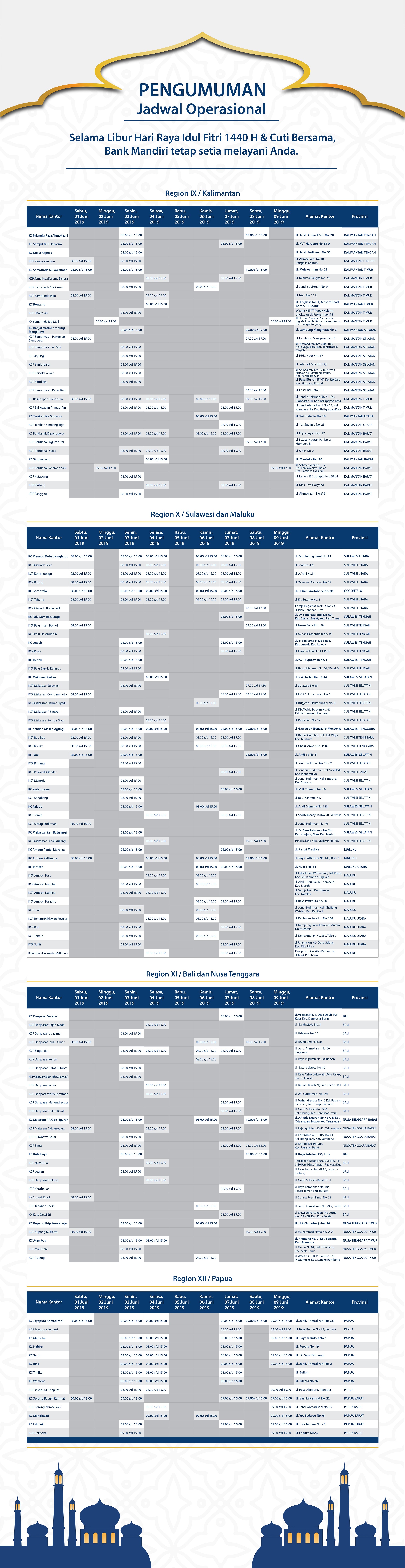302 cabang bank mandiri tetap operasional pada libur idul fitri 2018.